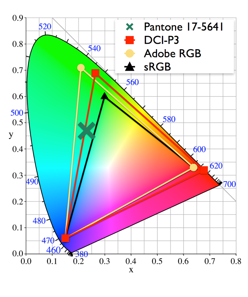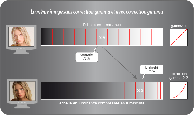 Par exemple, les couleurs rouges correspondent à des longueurs d’onde proches 650 nm, les jaunes 580 nm, les vertes 530 nm, les bleues 430 nm.
